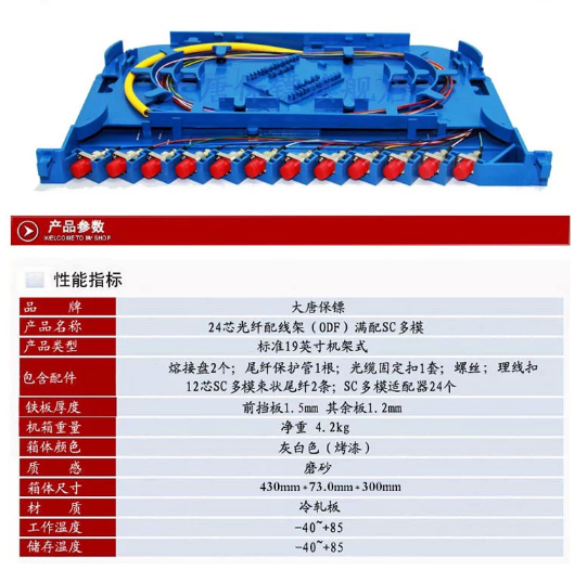 odf光纤配线架 机架式 1u 光纤配线架24...